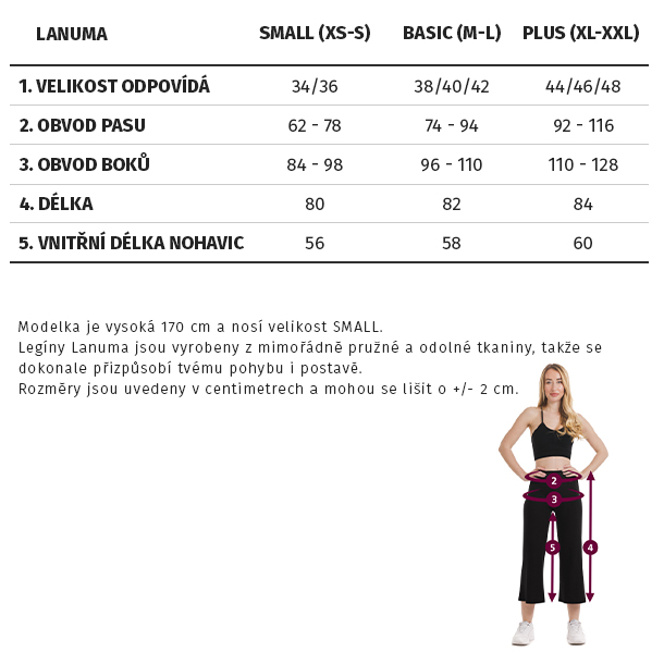 Legíny Lanuma jsou jemné, měkké a pohodlné. Propojili jsme měkkost a pohodlnost s jedinečným designem. Díky tomu se budete v našich legínách cítit pohodlně a uvolněně.