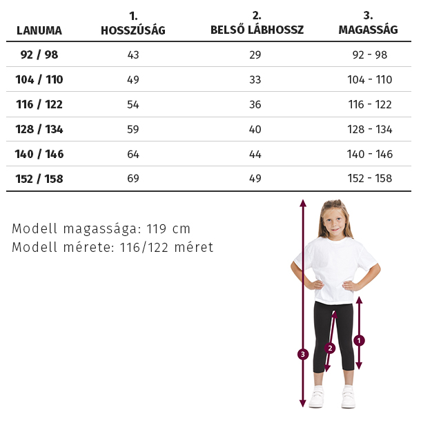 • Méret: 92/98, 104/110, 116/122, 128/134, 140/146 in 152/158 (Mérettáblázat)