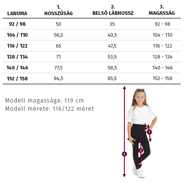• Méret: 92/98, 104/110, 116/122, 128/134, 140/146 in 152/158 (Mérettáblázat)