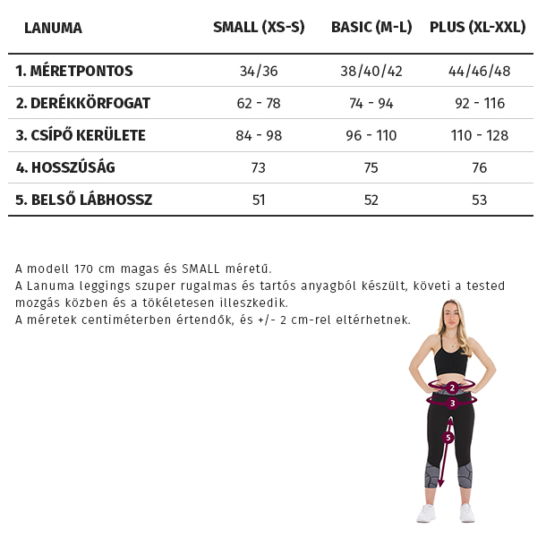 - A leggings mintája némileg eltérhet, mivel az anyag szabásától függ a minta elhelyezkedése.