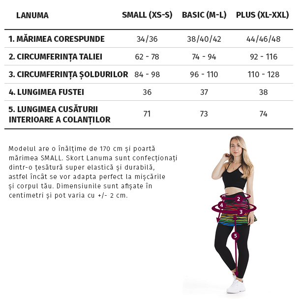 Skort-ul poate fi ușor diferit de modelele prezentate, deoarece imprimeul depinde de croiala materialului.
