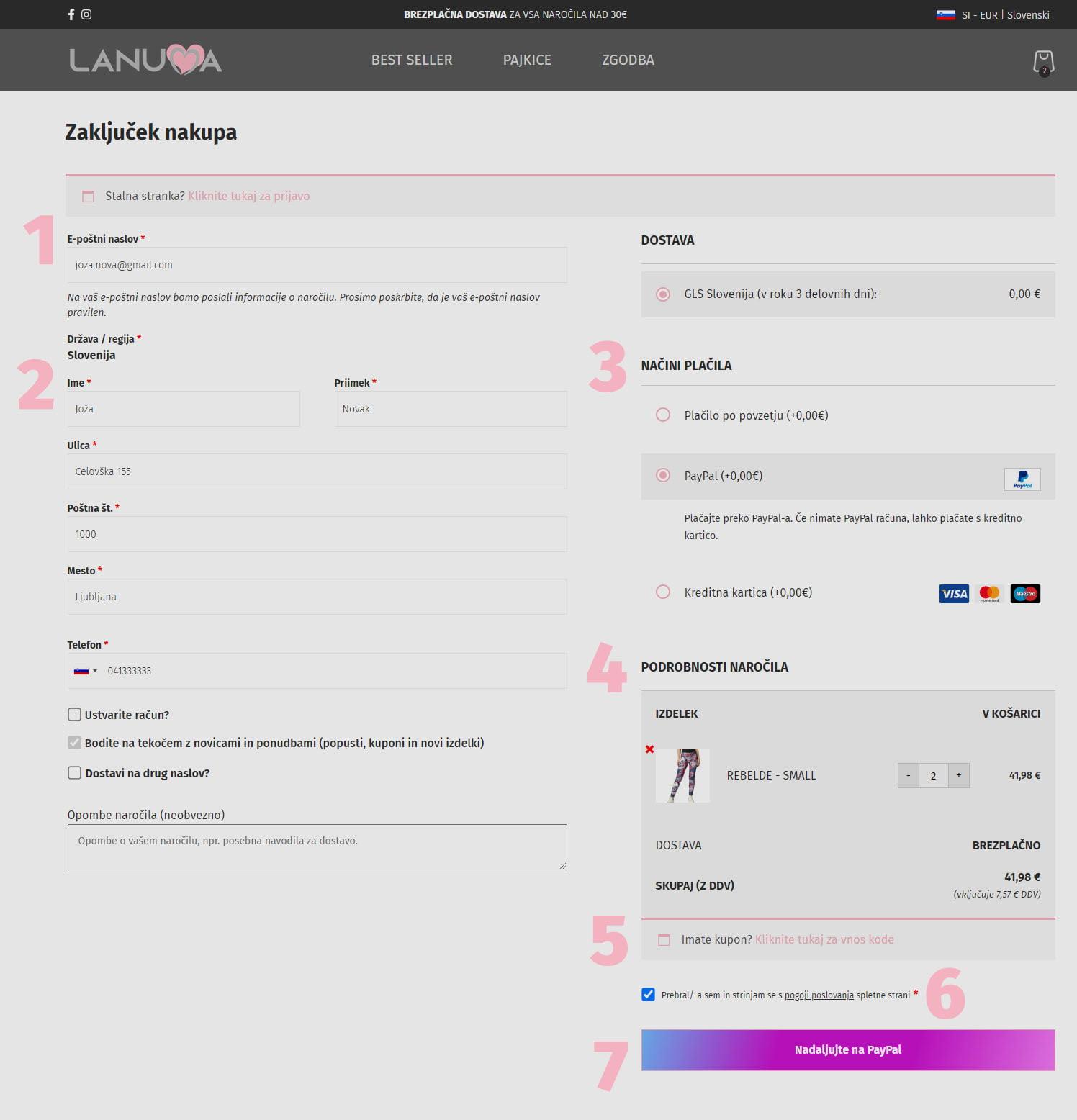 - Izpolnite svoje podatke (ime, priimek, ulica in hišna številka, poštna številka, mesto in telefon)