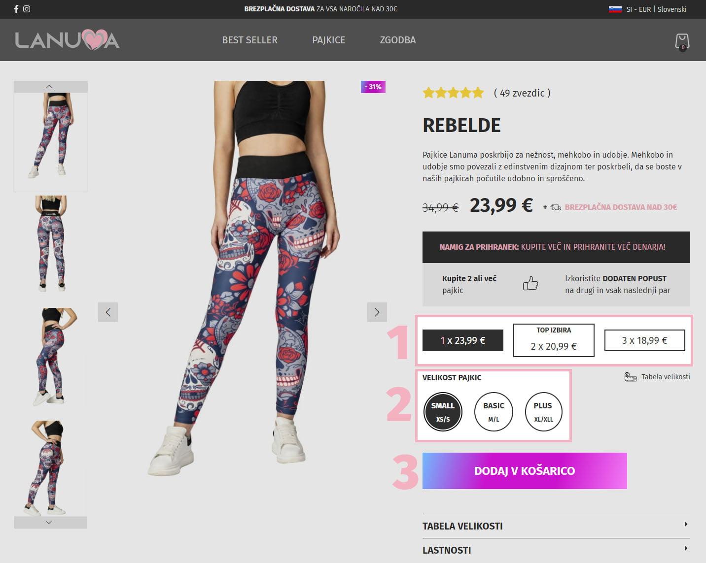 3. Dodajte v košarico. Na mobilnem pogledu vas spremlja gumb z enako funkcionalnostjo dodajanja v košarico.