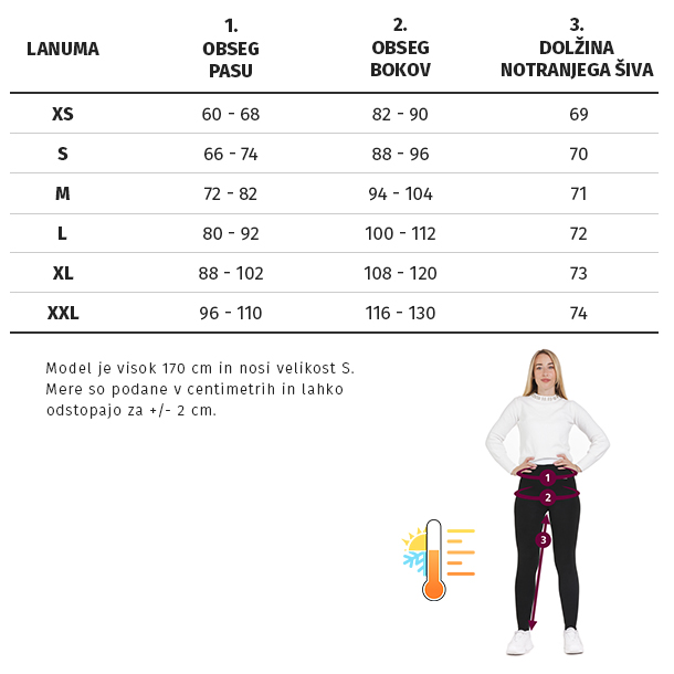 - Velikosti: XS, S, M, L, XL in 2XL (Tabela velikosti)