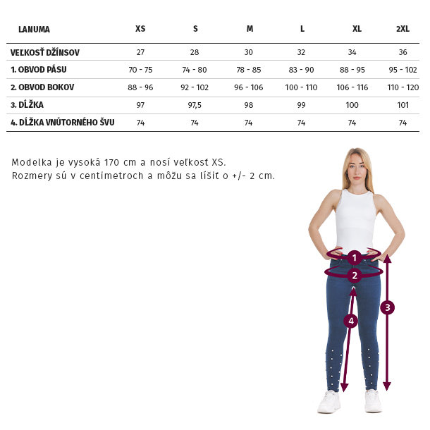 • Veľkosti: XS, S, M, L, XL a 2XL (tabuľka veľkostí)